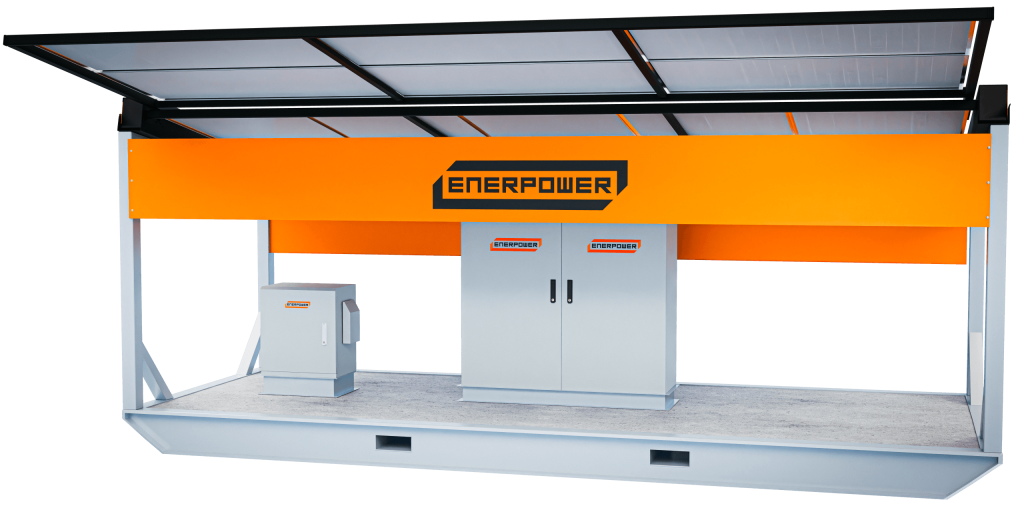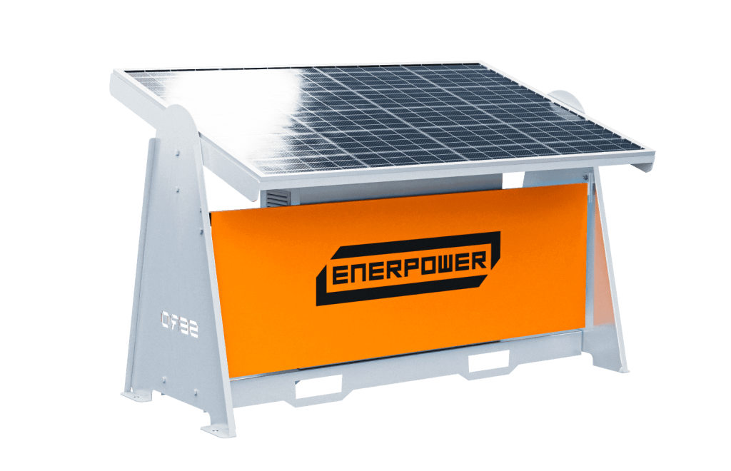 The ENERPOWER 2000 solar skid is equipped with 2000W of solar power and 25kWh of lithium battery storage. These self-contained, stand alone systems offer 12V, 24V, or 240V outputs, making them ideal for various mid-range, off-grid applications that require a consistent and reliable power source. The rugged, heavy-duty frame is built to endure the harshest environments, featuring retractable solar arrays and integrated for pockets for ease of handling. These modules are designed to fit within a standard shipping container for safe and efficient delivery to any location.
